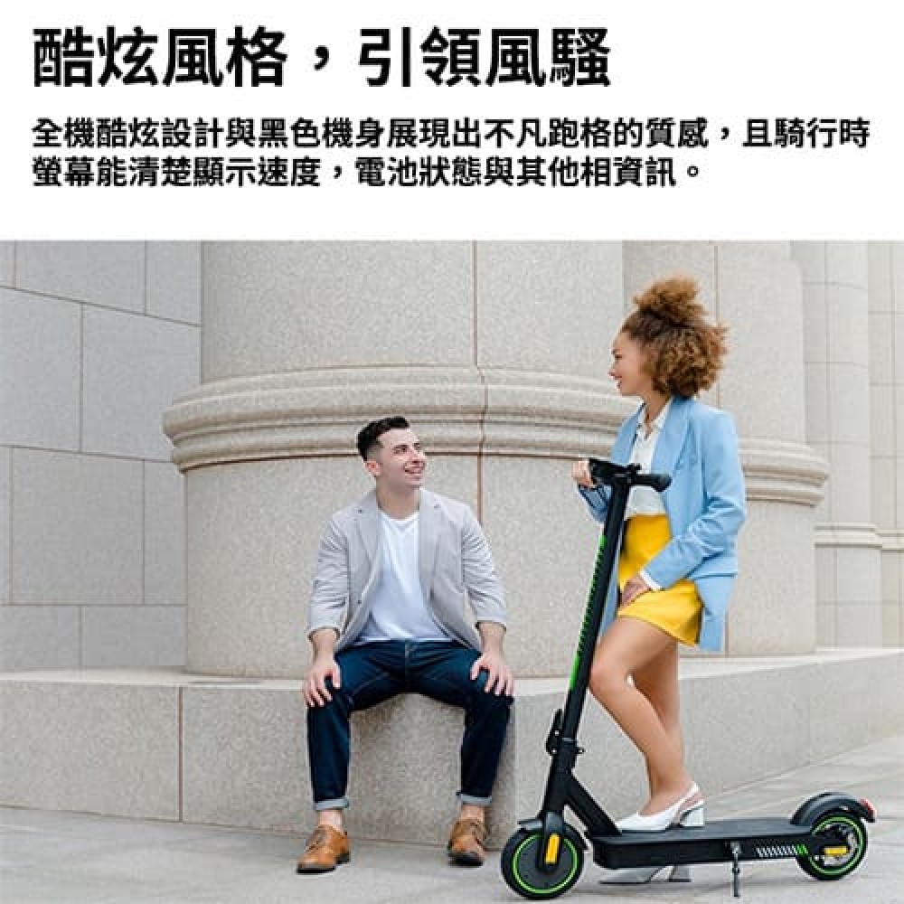 與Acer ES Series3電動滑板車結伴徜徉。安全耐用的性能陪你輕鬆騎行到任何地方,讓您更專注於前方的目標,瀟灑自在。