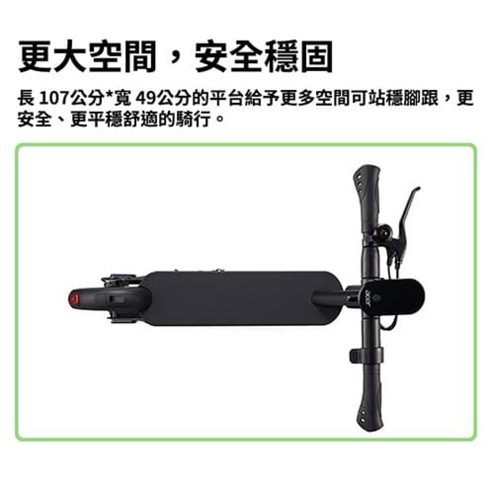長107公分*寬49公分的平台給予更多空間可站穩腳跟,更安全、更平穩舒適的騎行。