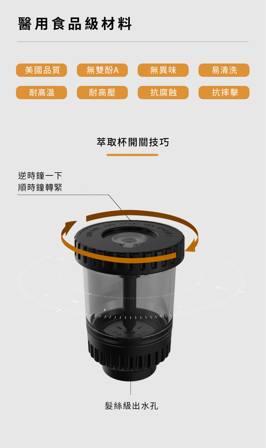 ➤萃取杯選用環保材質,榮獲 FDA美國食品藥物管理局 國際權威認證